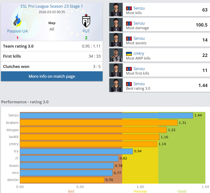 The MongolZ багийн сэлгээний тоглогч, HLTV-с зарласан 2025 оны Дэлхийн шилдэг 20-н тоглогчийн нэг Senzu буюу Азбаяр нь Украйн улсын Passion UA багт зээлээр очсоныг та бүгд мэдсэн билээ. Тэгвэл шинэ багтайгаа оролцож байгаа эхний тэмцээн, эхний тоглолтоо амжилттай хийлээ.